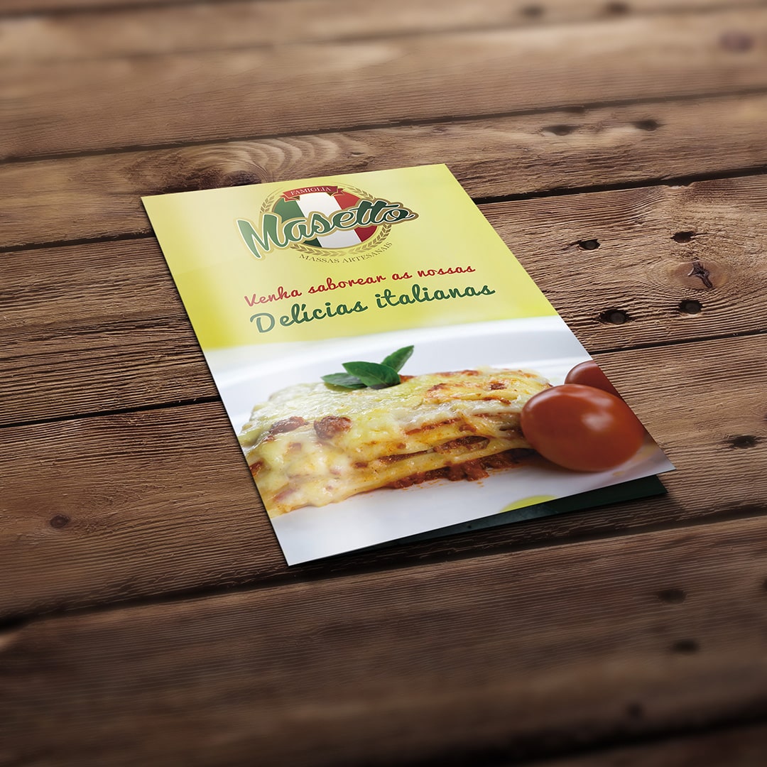 A tipografia cursiva e divertida da marca "Masetto" adiciona um toque de charme e personalidade. Ela evoca a ideia de um cozinheiro italiano apaixonado que compartilha suas receitas familiares com alegria.