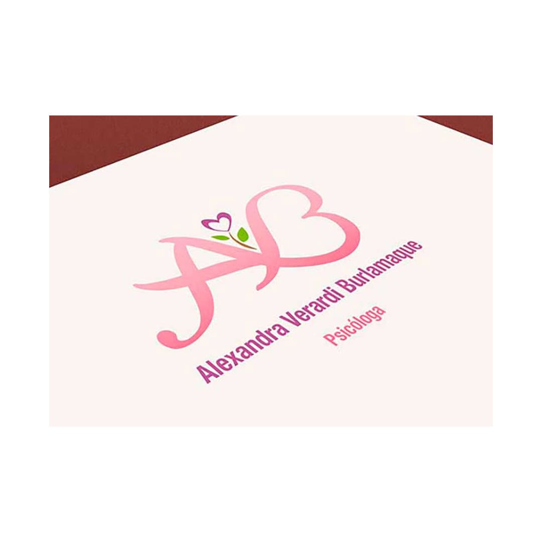 Já marca "Alexandra Bulamarque" psicóloga é uma representação visual do apoio, da cura e do crescimento pessoal. Seu design incorpora elementos das iniciais "A" e "B" que se entrelaçam, formando um símbolo único. No centro desse símbolo, uma flor em formato de coração brota, evocando amor, renovação e vitalidade, enquanto as cores rosa e roxo transmitem sensibilidade, empatia e espiritualidade.